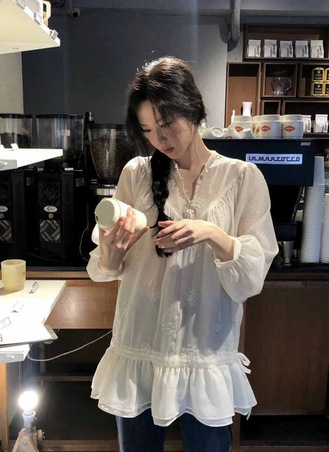 BS潔花刺繡透肌長上衣