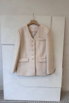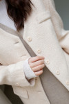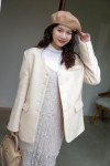 俐落有型的無領剪裁,更適合內搭特色領上衣,讓上身有份量又不會太厚重。搭配絨感面料增加層次感,簡單素色也能穿出輕華麗。加上同色小釦讓視覺一致,長度可遮臀,一件修飾你在意的臀線條!!