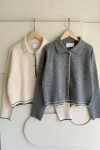 不過於強調身形的翻領針織外套, 配上簡單的褲裝就能營造出慵懶率性的時髦感 金色排釦起到畫龍點金的作用,在視覺上精緻且俐落 秋冬必備的,下擺/手袖撞色細節氣質又不失俏皮 也讓手袖反摺就有型,兩色都很棒呀