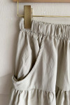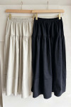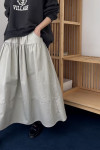 Made in Korea 以細緻的絨光面料打造柔和光澤,散發低調奢華氣息。裙身分層剪裁讓整體層次更加豐富,視覺上修飾身形比例,同時帶出輕盈飄逸的動感。 傘狀版型自然散開,行走間裙擺隨步伐流動,展現柔美線條。腰部採用彈性鬆緊設計,穿脫方便,兩側皆有口袋。 布料帶有細微絨感,觸感柔軟卻不厚重,即使長時間穿著也不悶熱。無論搭配針織毛衣、大學T或襯衫,都能展現不同氛圍。
