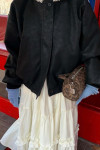 • 修飾比例:長度落在髖部的半短版長度,無論搭配什麼下半身都能讓比例看起來更好。下襬與袖口的束口細節讓整體版型更漂亮。