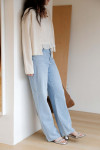 純淨清爽的水洗淺藍 經過多道工序處理的自然水洗色澤,散發出優雅的復古氛圍。淺藍調不僅能視覺降溫,更能輕鬆駕馭各種色系的簡約上衣,讓整體造型顯得乾淨俐落。