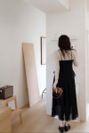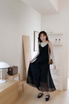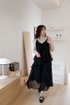 這款「韓國荷葉細肩洋裝」選用了極致輕盈的雪紡面料,