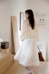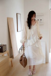仙氣白色 White: 像是晨間的一抹雲朵,純潔且透亮。白色雪紡自帶的層次感,讓洋裝顯得更加立體,適合在充滿陽光的日子裡,展現最仙氣的一面。