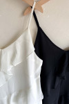 優雅黑色 Black: 經典黑將雪紡的柔弱感轉化為神祕的優雅。當荷葉細節與黑色相遇,多了一份洗鍊的時髦感,不管是搭配西裝外套或是單穿,都能穿出高級的份量感。