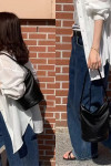 這款「韓國設計師真皮拉鍊水桶包」,用手掌觸摸到的那一刻,就能感受到荔枝紋牛皮的細膩溫潤。