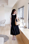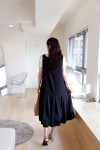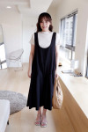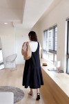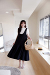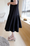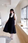 低腰剪裁:獨特的低腰接縫設計,打破了傳統連衣裙的比例,增添了一份隨性的稚氣與時髦感。