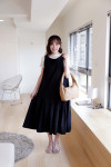 立體寬壓褶裙襬:裙下擺採用紮實的立體壓褶工藝,撐起 A 字廓形,行走間散發出迷人的律動感。
