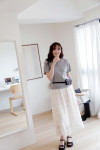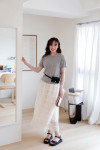 將視覺焦點集中在裙襬的層次感,展現迷人的韓系優雅。