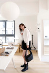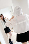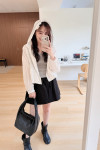 結合外套的柔和刺繡細節,呈現自然不做作的甜感穿搭。