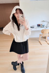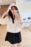肩寬57胸寬59腰寬58下擺寬61袖寬24袖口寬12袖長48全長(不含帽)51(cm)